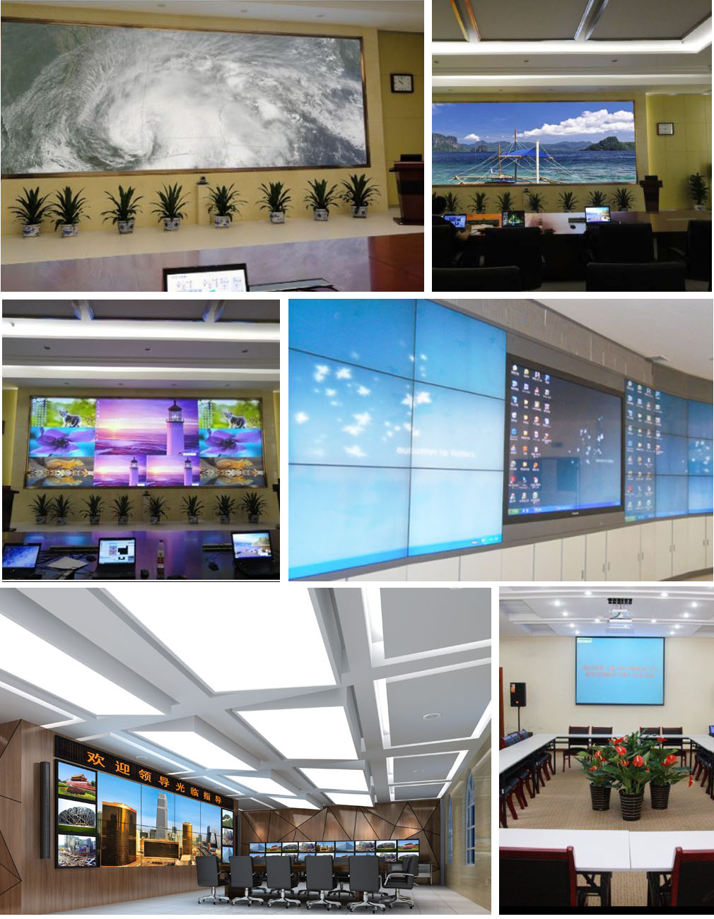 氣象局新建的天氣預報會商平臺,通過先進的90度側投技術和旋轉功能,將常規的2×3投影改為1×6投影,減少了融合帶,特別是十字融合帶,實現了色彩均勻的高清晰顯示效果。該會商平臺主要用于天氣預報會商,與各個省臺進行會議商討,可連接到中央總臺,觀看總臺天氣數據,也可將數據發送給轄屬區縣。系統簡潔大氣、顯示清晰均勻、數據切換靈活自如,開窗大小隨心設置,極大地提高了工作效率,為天氣預報會商的準確性提供了硬件上的保障。