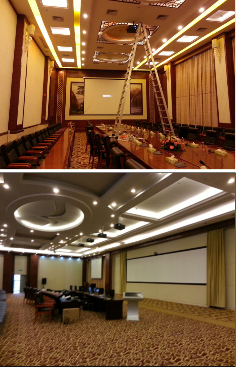 五洲龍汽車總部集中控制室采用了四臺8000流明工程機拼接融合方案,配備了整套的中控、矩陣設備及多畫面輸入功能;另會議廳采用了一臺8000流明工程投影機、均由深圳科視光影公司承建及維護!