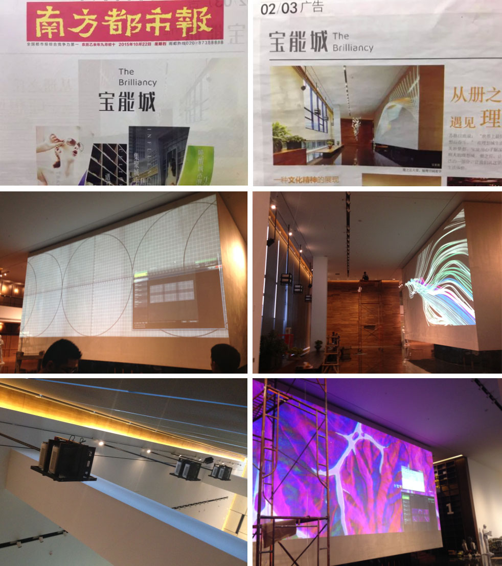 采用六臺6500流明WXGA高清工程投影機、做六通道拼接融合大畫面,直接投射于11.25米*4.37米的墻體上;系統清單:投影機、六通道圖像處理器、雙層吊架。