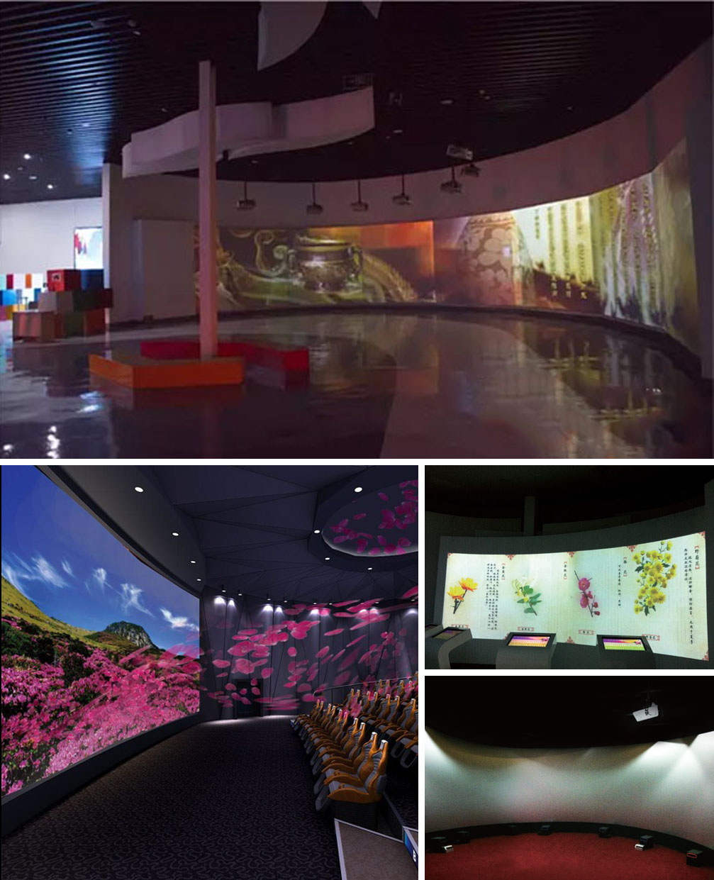 東南花都夢幻館,采用了30臺雙燈6500流明工程投影機,通過多通道融合拼接、涵蓋了5D影院、地面互動、弧幕影院表現(xiàn)花卉在生活中的多重功效和應(yīng)用!