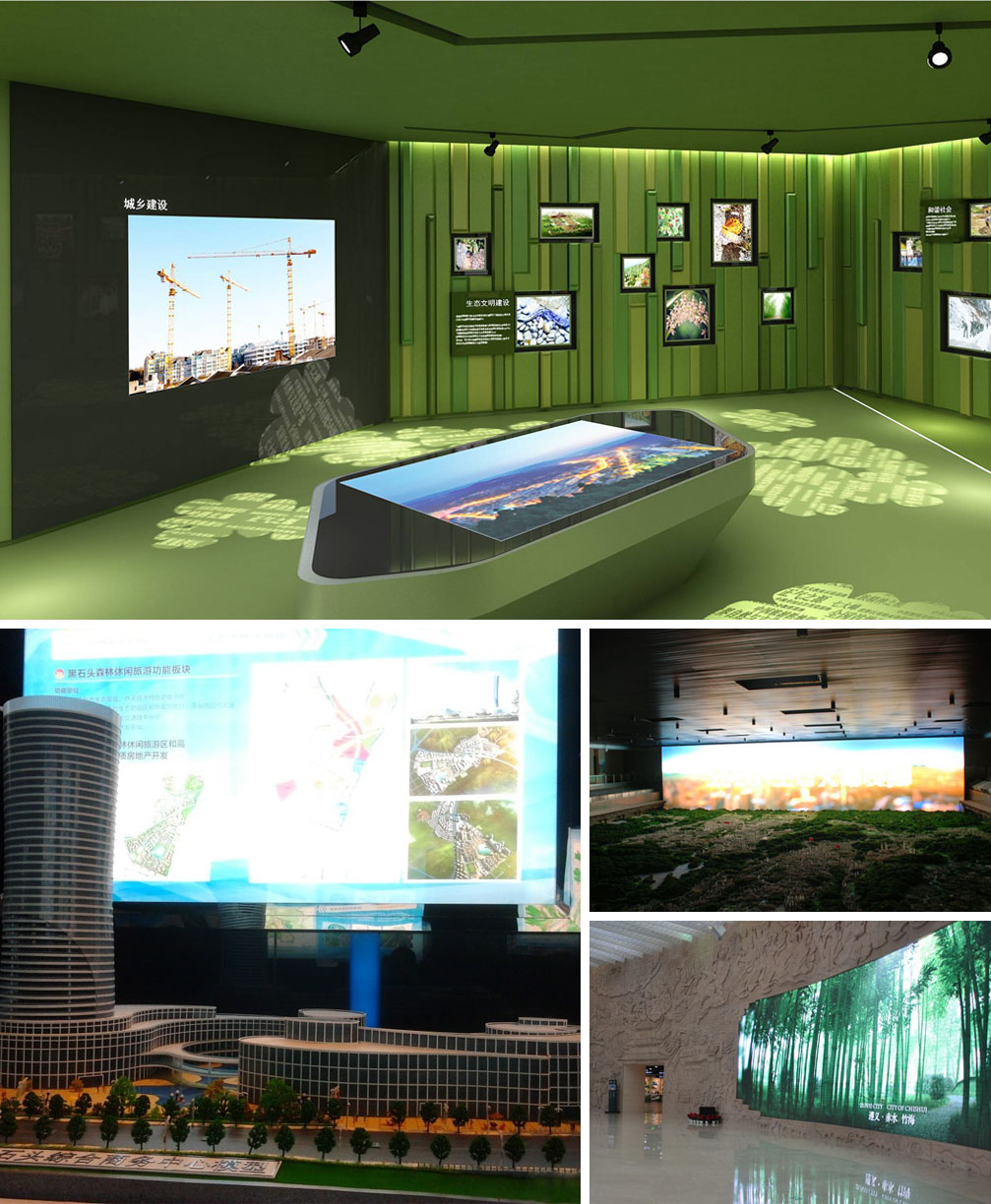 貴陽城鄉(xiāng)規(guī)劃展覽館的壓軸之作就是中心城區(qū)規(guī)劃智能沙盤實體模型,號稱全國最大的智能沙盤。使用投影分別為實體沙盤規(guī)劃模型和數(shù)字沙盤影像模型投影。實體沙盤規(guī)劃模型,為貴陽環(huán)城鐵路內(nèi)713平方公里區(qū)域,模型比例為1:1050。數(shù)字沙盤影像模型投影面積為1340平方米,使用了降落傘布的特殊材料做成巨幅白色幕布,電動控制伸縮。LED電子屏每次會播放13分鐘的貴陽紀(jì)錄片。總規(guī)模型與數(shù)字沙盤相互輝映,聲光電技術(shù)交互使用,重點地帶可自由升降,多感觀、全方位展示貴陽城市發(fā)展的歷史、現(xiàn)狀和美好未來。