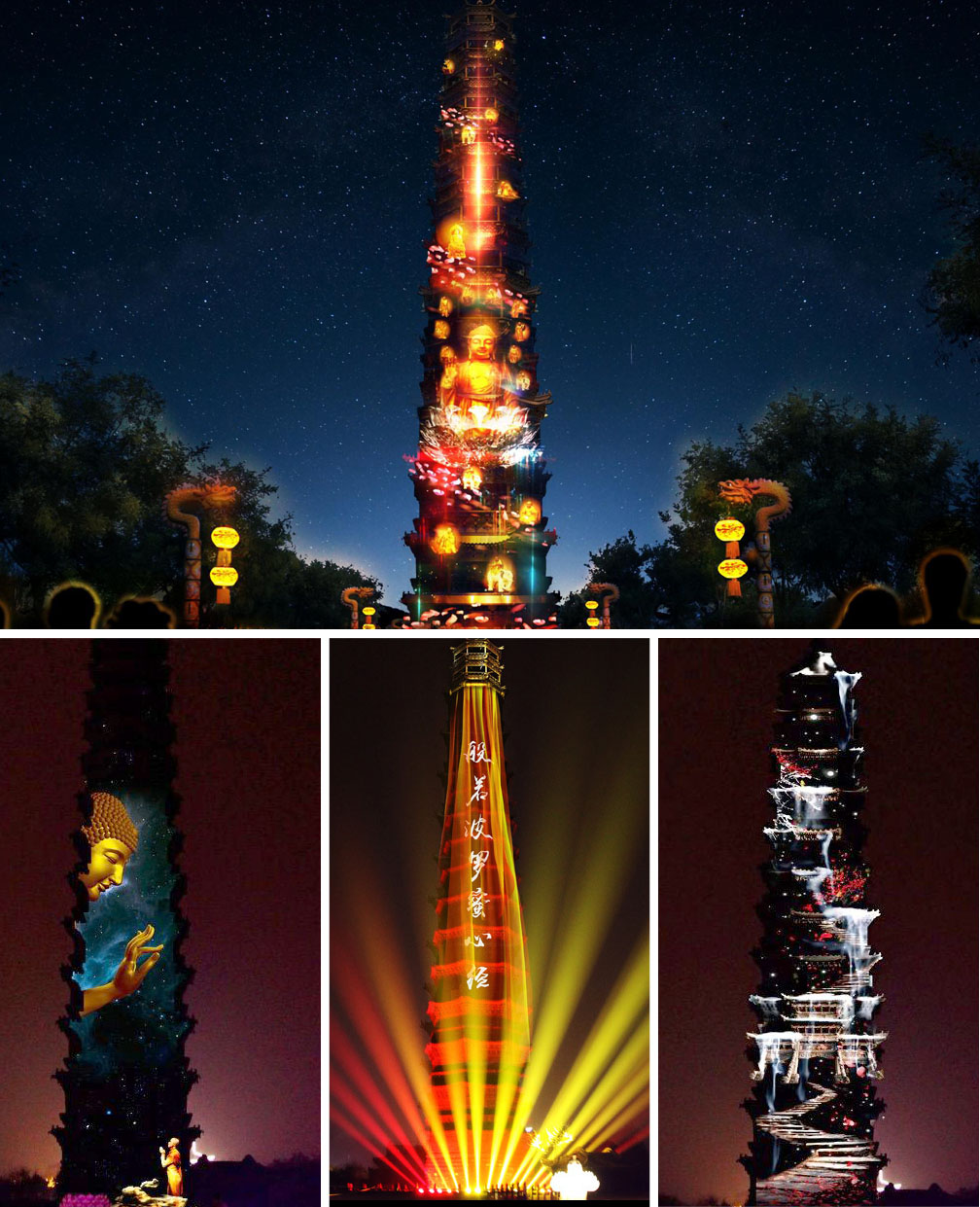 《鐵塔傳奇》是全國首例塔身投影秀,被稱為“中國塔影第一秀”,是國內首次以立體投影秀的方式來展示千年文物古跡。《鐵塔傳奇》投影秀采用“肖像”投影方式,通過科視內置的高級融合技術,使得塔體投影畫面達到理想的超高亮度和清晰度。